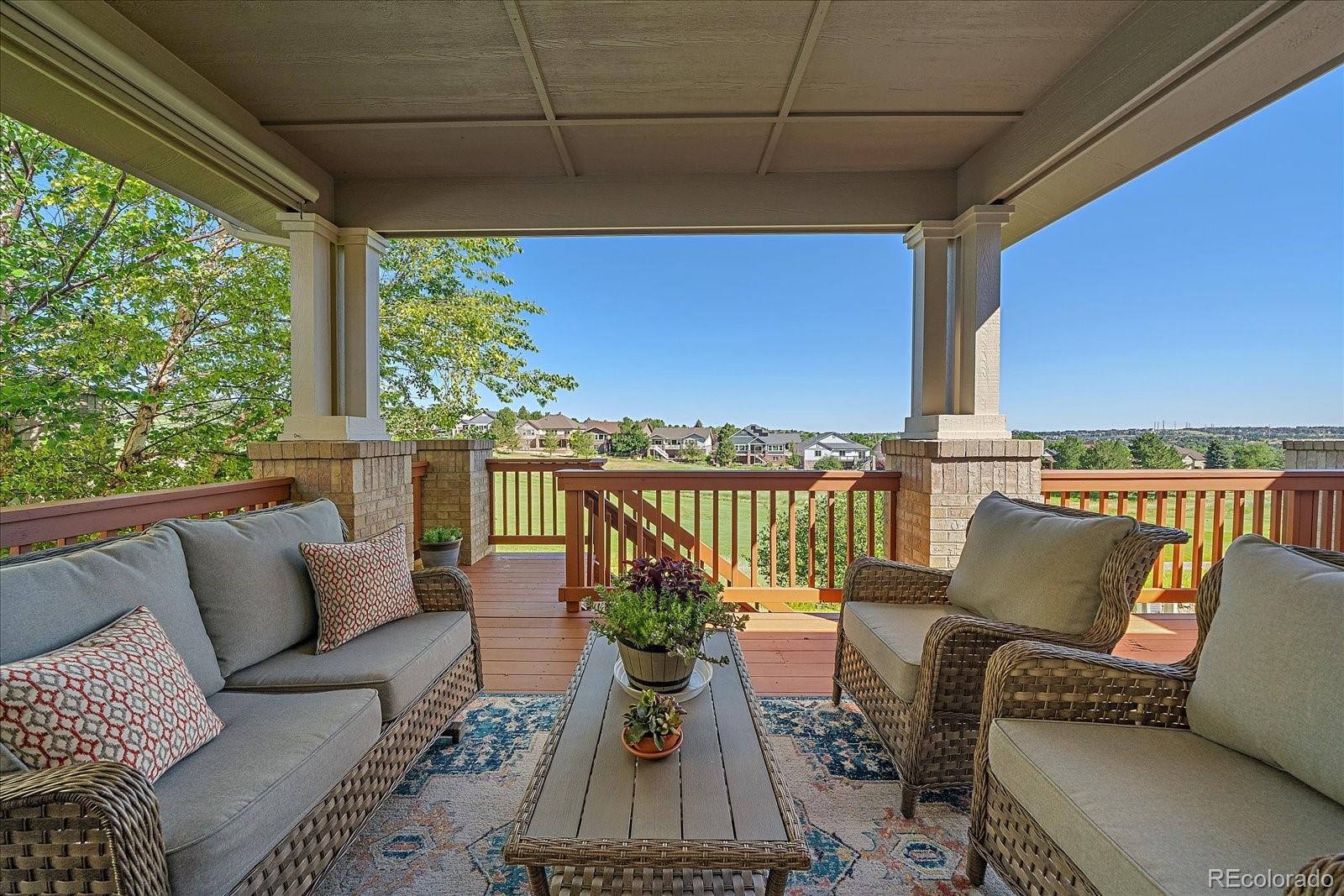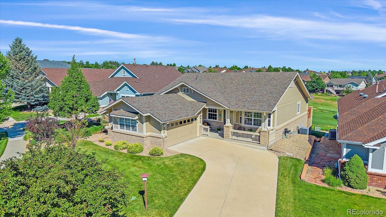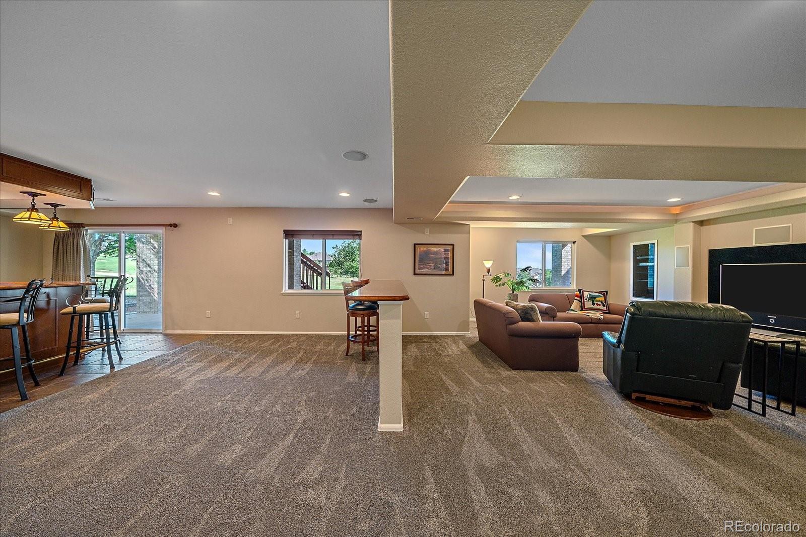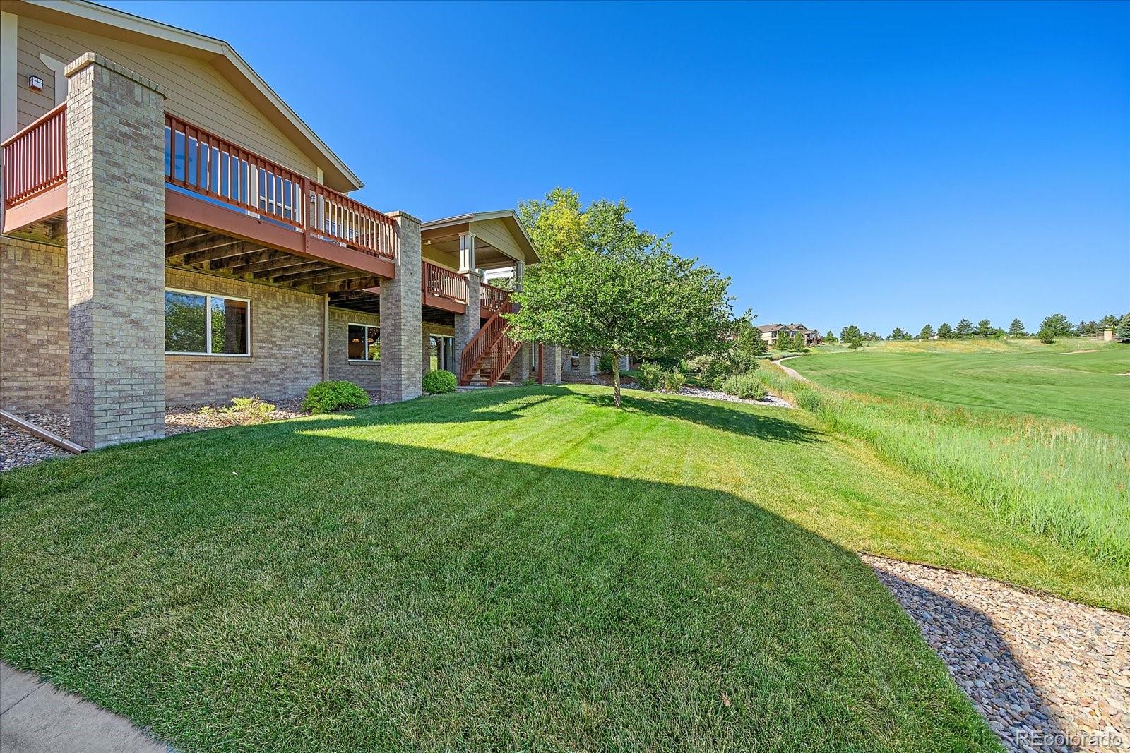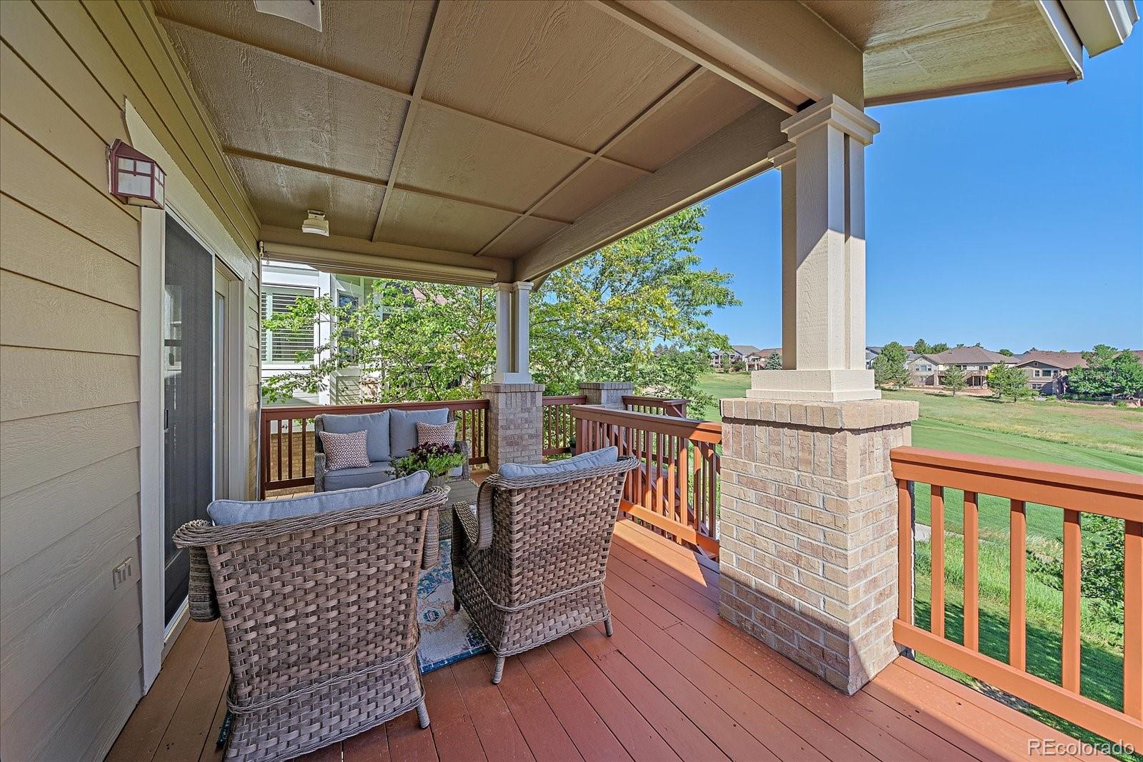 The open-concept main level is ideal for everyday living, while the finished lower level is an entertainer's dream--featuring a full bar with beverage refrigerator, game/poker area, buffet bar, and included surround sound equipment. A spacious guest bedroom and 3/4 bath provide privacy and comfort for visitors. Enjoy stunning sunsets views from the covered back porch or relax on one of the multiple outdoor patios and decks, all while watching golfers tee off just steps away. Retreat to the primary suite, complete with a large walk-in closet, and appreciate the practicality of the oversized 2.5-car garage--perfect for golf carts, storage, or hobbies. Additional highlights include: New Class 4 impact-resistant roof (2024), Rachio smart sprinkler system for effortless lawn care, Located within a premier 45+ golf course community with access to top-tier amenities.