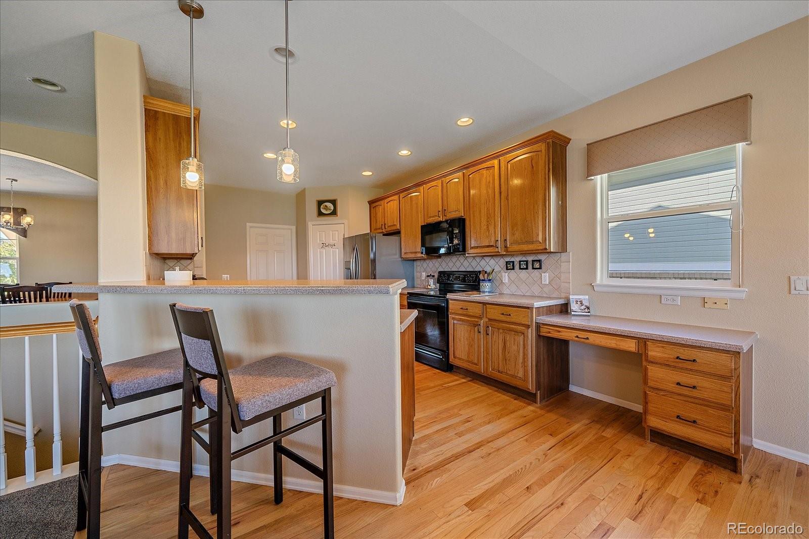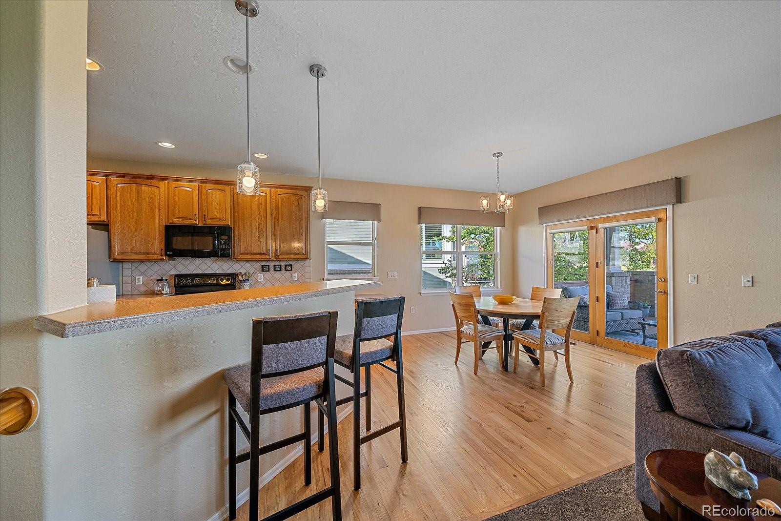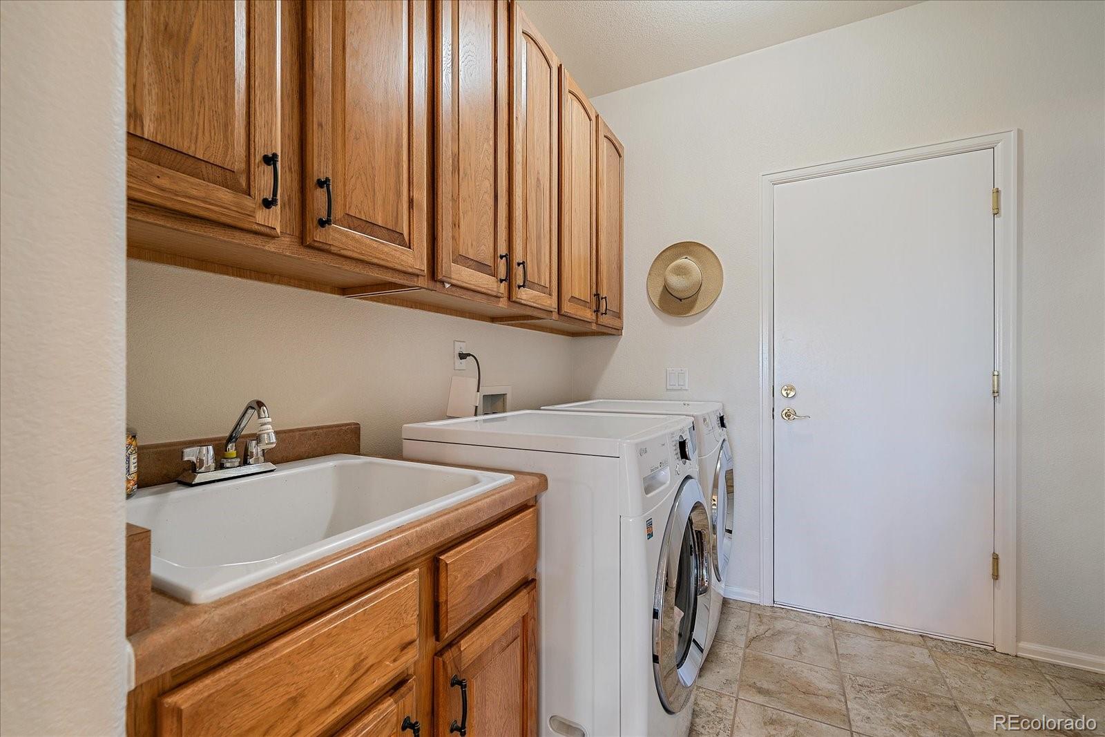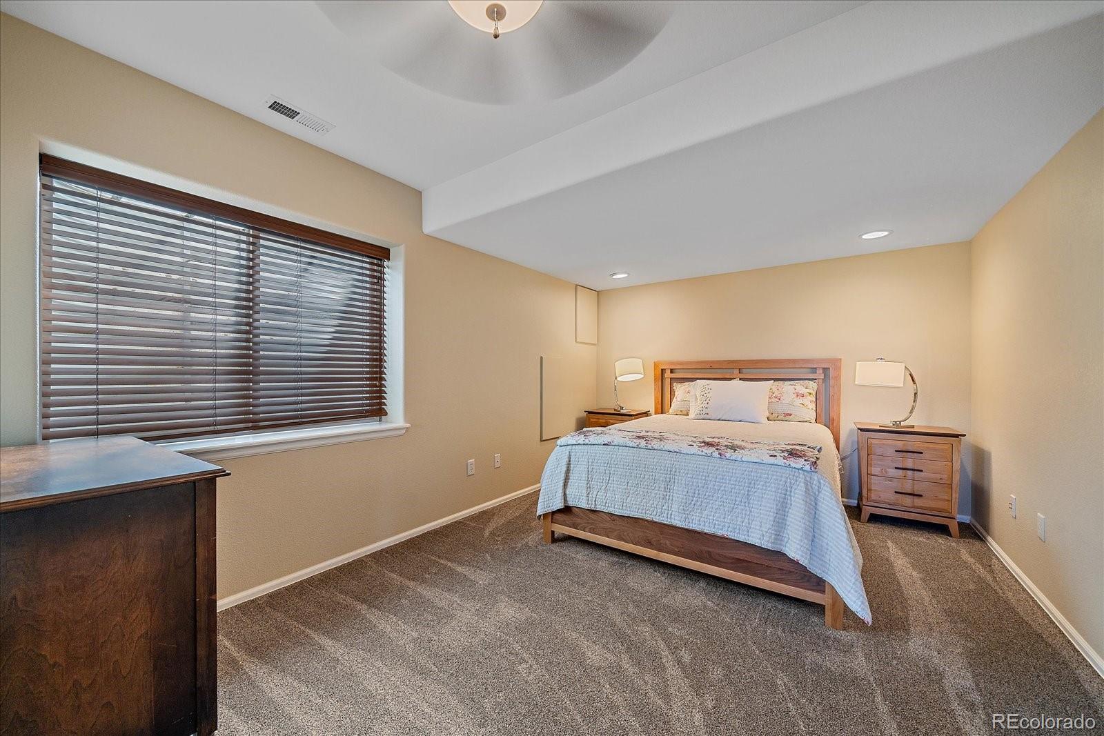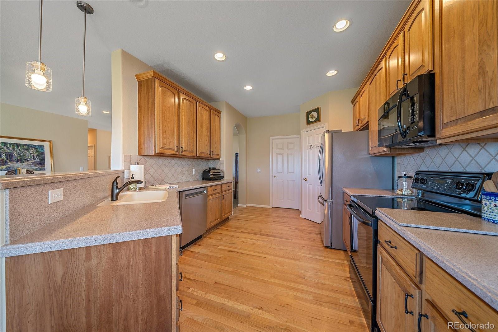 The open-concept main level is ideal for everyday living, while the finished lower level is an entertainer's dream--featuring a full bar with beverage refrigerator, game/poker area, buffet bar, and included surround sound equipment. A spacious guest bedroom and 3/4 bath provide privacy and comfort for visitors. Enjoy stunning sunsets views from the covered back porch or relax on one of the multiple outdoor patios and decks, all while watching golfers tee off just steps away. Retreat to the primary suite, complete with a large walk-in closet, and appreciate the practicality of the oversized 2.5-car garage--perfect for golf carts, storage, or hobbies. Additional highlights include: New Class 4 impact-resistant roof (2024), Rachio smart sprinkler system for effortless lawn care, Located within a premier 45+ golf course community with access to top-tier amenities.